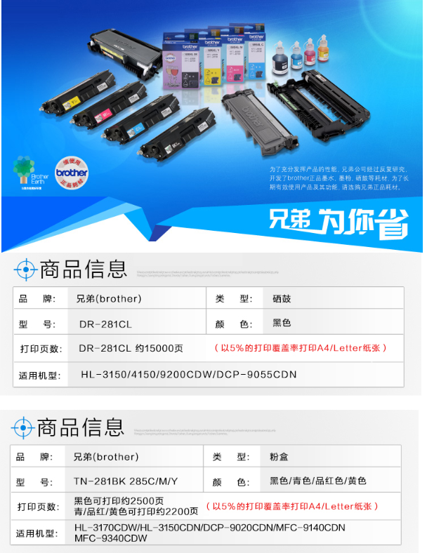參數(shù) [品牌] 兄弟 [型號] TN-281/285 原裝硒鼓 [毛重] 1.00KG [產(chǎn)地] 中國 [單位] 支